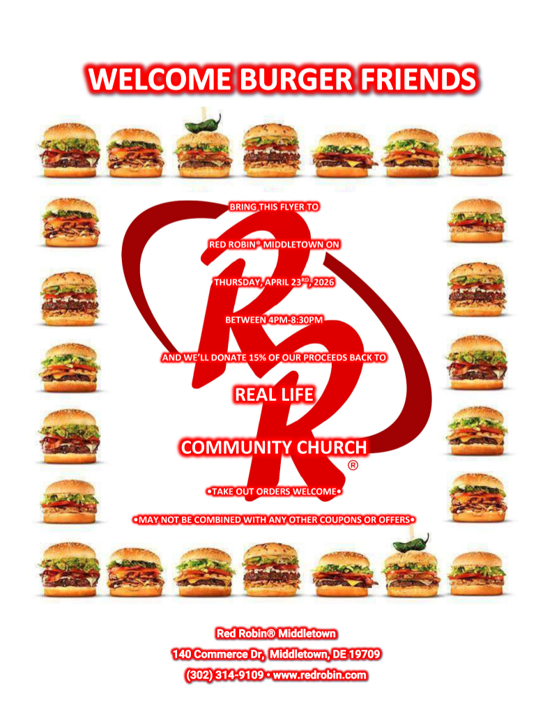 Support RLCC by getting a dine-in or take-out meal at the Middletown Red Robin on April 23rd! Show this flyer for us to benefit!
